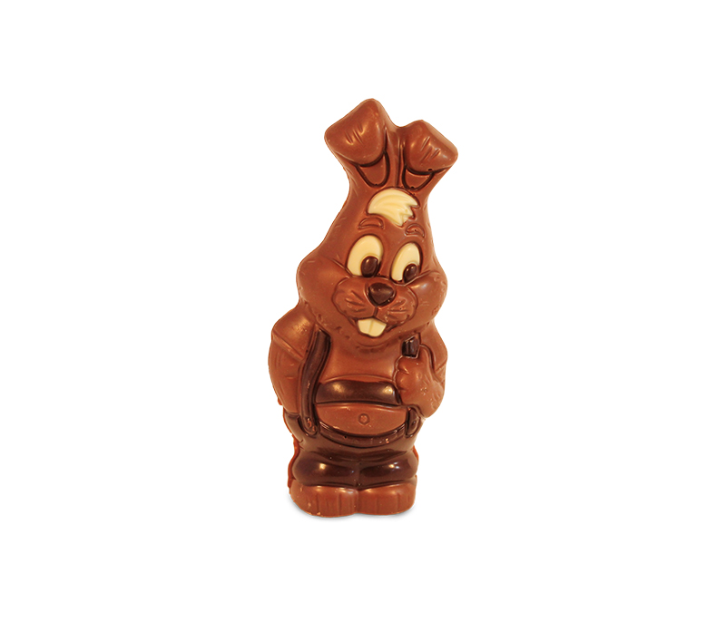 Bayernhase aus edler Vollmilchschokolade dekoriert mit weißer und Zartbitterschokolade